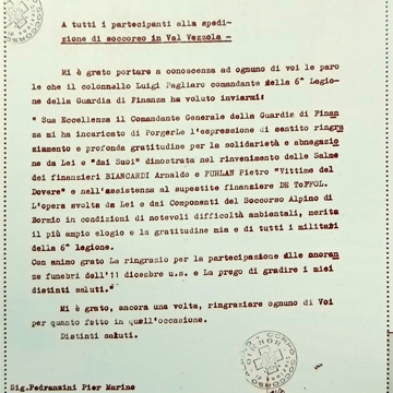 Una pattuglia di tre finanzieri è fuori da tre giorni, senza collegamenti radio, è ora di rientrare. La montagna è coperta da una spessa coltre di neve, ma i contrabbandieri sono forti montanari. Si trova di fronte un avvallamento piuttosto ripido, bisogna passare a tutti i costi. Il più esperto tra di loro (o quello che dovrebbe esserlo) procede con fatica. Ha un presentimento e raccomanda agli altri di tenersi un po’ lontani. Improvvisamente, inaspettatamente, accade ciò che non dovrebbe accadere: la valanga! Il manto nevoso trema sotto ai loro sci. Nel batter d’ali di una farfalla, senza che se ne rendano conto, i tre sono sepolti sotto la massa di neve, che si è mossa ricercando un suo naturale, nuovo, equilibrio. La pattuglia è dunque dispersa da due giorni fra Trepalle e la Val Vezzola, vicino al Passo del Foscagno in Valtellina. Scatta la solidarietà tra uomini di montagna, i contrabbandieri organizzano il soccorso, riusciranno a salvarne uno... Dal resoconto di un soccorritore e da fanti private e notizie da giornali. Da questa storia, e dalle esperienze personali di una vita passata tra studi della neve e delle valanghe e soccorsi in montagna, è nato il Capitolo dedicato alle Valanghe e alla Solidarietà alpina nel romanzo storico "Il frate e il cecchino" (Alpinia Editrice, 2024).