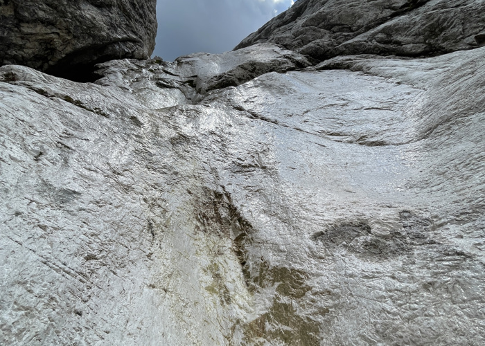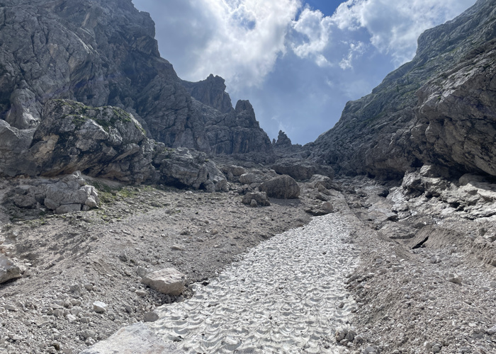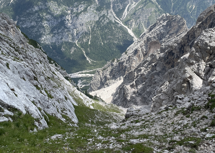 In questa avventura ho voluto ricercare una via tra i Piani dell’Antelao e la Val d’Oten percorrendo una forcella dimenticata, quasi inedita: la Forcella Antelao. È una via difficile, impegnativa, senza tracce. Orientativamente ardita per la difficoltà di trovare un comodo accesso sia in salita che in discesa. La parte finale, che ha messo fine alla mia avventura, deve essere assolutamente percorsa con materiale alpinistico per la messa in sicurezza. Da questa esperienza ho imparato il mio limite.