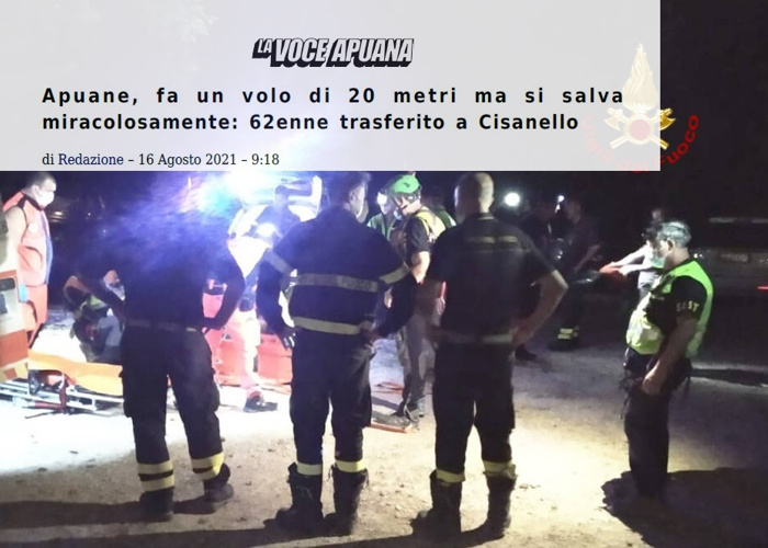 Nel mio peregrinare sulle Alpi Apuane, così vicine al mare, avevo imparato che sono vere montagne, dove l'erba che ondeggia al vento nasconde le insidie di un terreno fragile, dove le rocce sono spesso rese instabili perché lavorate dall'uomo che qui estrae l'oro bianco del marmo. Lo sapevo, ma per la prima volta mi muovevo da solo, non avevo la responsabilità della moglie o di un figlio o di un amico meno esperto e si può essere meno attenti. Così si vede la fine del percorso, ma non l’insidia poco evidente in un sasso che si muove.